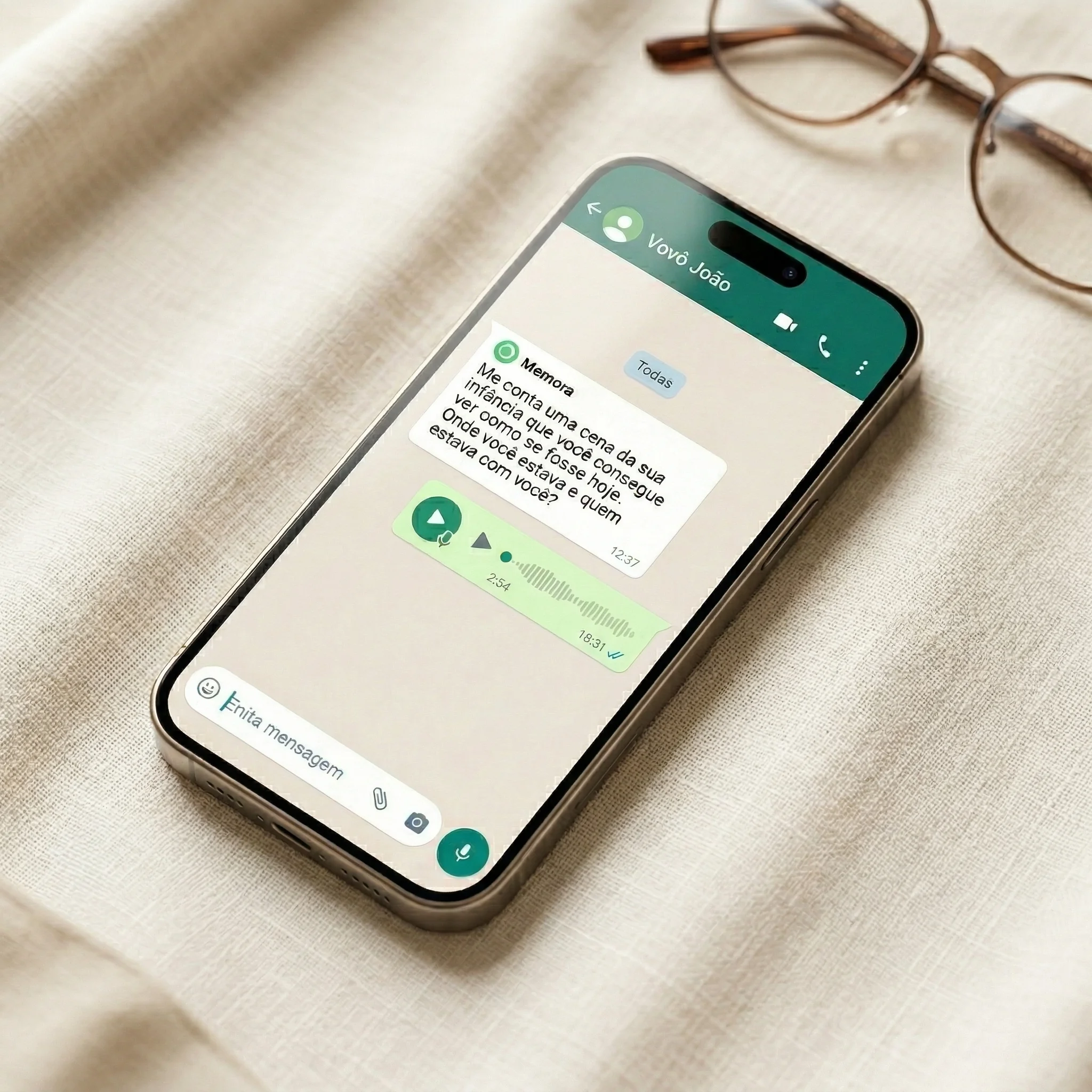 Um único pacote para começar com perguntas curadas, respostas por áudio no WhatsApp e histórias que já entram no seu livro.